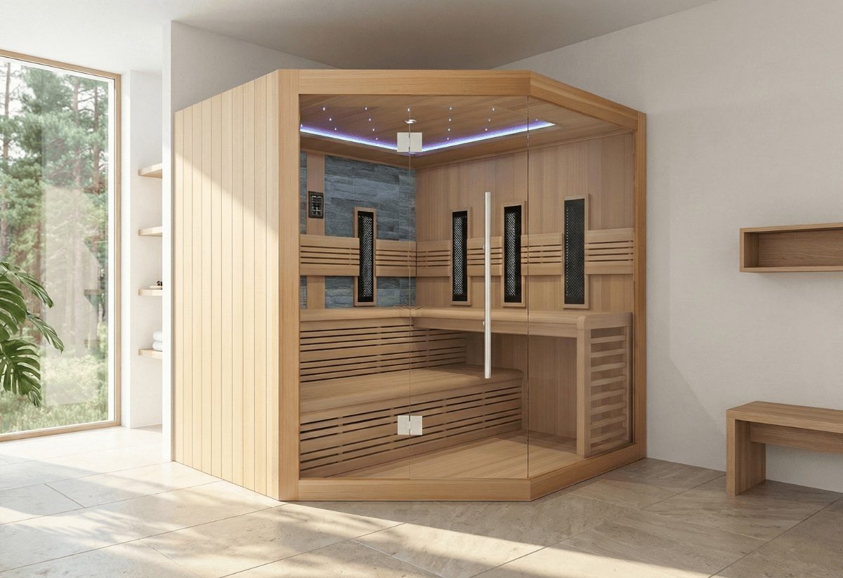 Wenn Sie sich nicht zwischen einer traditionellen Sauna und einer Infrarotkabine entscheiden können, dann ist eine Kombinationssauna etwas für Sie! Sie können in einer Kombisauna entweder eine Infrarotsitzung genießen oder eine Saunasession machen. Eine Infrarotkabine braucht nicht lange, um auf Temperatur zu kommen und ist so ideal für „zwischendurch“. Die traditionell finnische Sauna können Sie immer dann nutzen, wenn Sie etwas mehr Zeit haben. Für die traditionell finnische Sauna heizen Sie die Kabine eine halbe bis dreiviertel Stunde vor. Der 380 Volt Ofen bringt Ihre Kabine auf maximal 80 Grad. Hier können Sie auch nach Belieben Aufgüsse mit verschiedenen Aufgusskonzentraten machen.